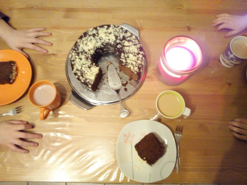 Um 16:40 Uhr kam dann Kind 2 von der Schule nach Hause und es hieß Kuchen fassen 🙂 .